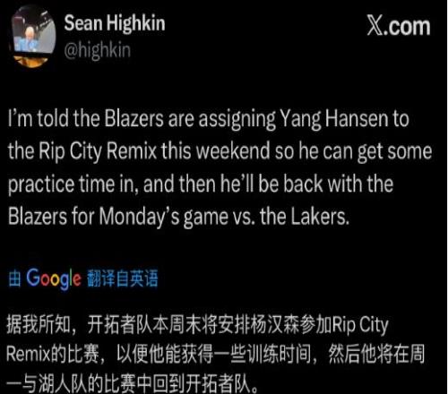 開拓者隊(duì)記Sean Highkin解釋了,開拓者就是為了讓楊瀚森收獲更多的訓(xùn)練時間,并且他將在周二與湖人的比賽中重回球隊(duì)。