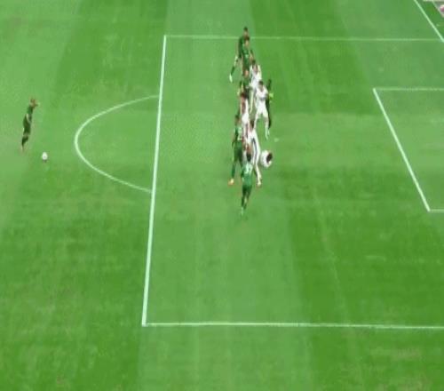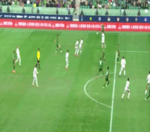 第6分鐘,張玉寧頭球擺渡,奧馬爾松解圍失誤,法比奧轉(zhuǎn)身掃射破門,但主裁判判罰越位在先進(jìn)球無效。
