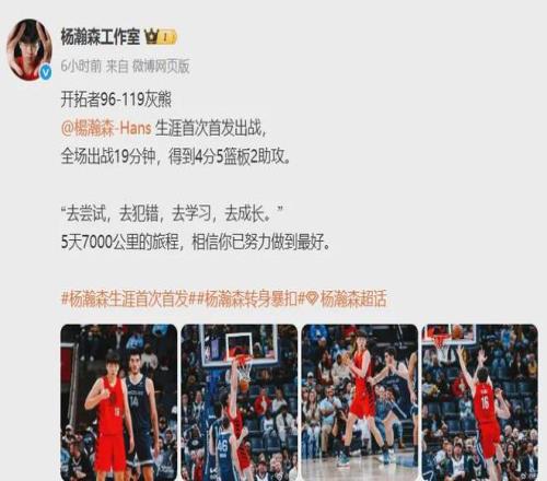 值得一提的是,楊瀚森在近5天時間飛了7000公里,星光不問趕路人......