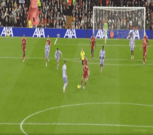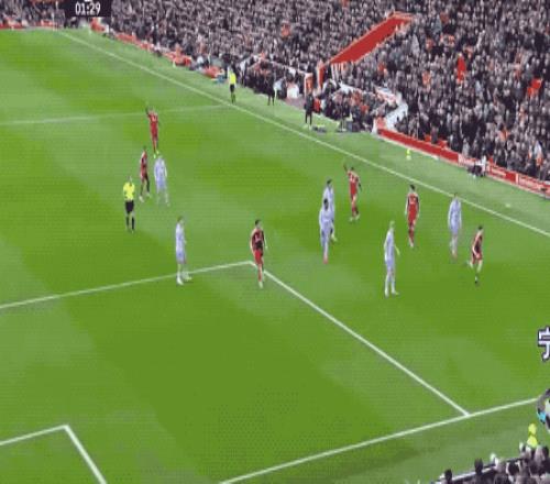 上場不到1分鐘,薩拉赫就在熟悉的右路送出妙傳,麥卡利斯特順勢傳中,門將搶在?;倏酥?,將球沒收。