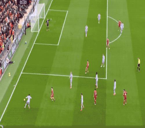 開場第46秒,明特在逼搶之下大腳解圍,瓊斯在前場頭球一頂,埃基蒂克停球射門一氣呵成,利物浦取得夢幻開局。