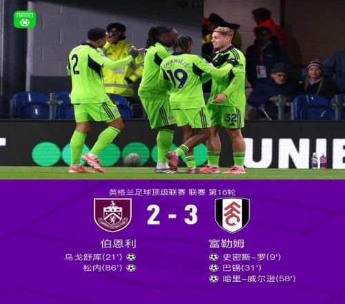 北京時(shí)間12月14日,英格蘭足球超級(jí)聯(lián)賽第16輪展開較量,伯恩利坐鎮(zhèn)主場(chǎng)迎戰(zhàn)富勒姆。比賽伊始,富勒姆率先打破僵局,史密斯-羅接哈里-威爾遜傳球后冷靜施射破門,幫助球隊(duì)取得領(lǐng)先。隨后伯恩利迅速做出回應(yīng),烏戈舒庫在庫倫的助攻下完成破門,將比分扳平。第31分鐘,富勒姆再度發(fā)力,哈里-威爾遜再次送出精準(zhǔn)助攻,巴錫得球后破門得分,客隊(duì)重新掌握優(yōu)勢(shì)。下半場(chǎng),丘庫埃澤為哈里-威爾遜送上妙傳,后者抓住機(jī)會(huì)建功,進(jìn)一步擴(kuò)大比分。臨近終場(chǎng)前,伯恩利由松內(nèi)挺身而出,攻入一球試圖扭轉(zhuǎn)局勢(shì)。最終全場(chǎng)比賽結(jié)束,伯恩利以2比3不敵富勒姆。